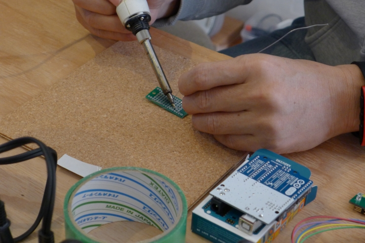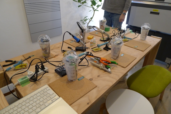 まずはハンダ付け講習会から。なかには学生時代以来、という参加者の方も。